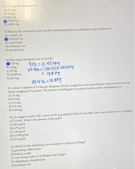 Solved 9 31 G Is The Same Mass As O 931 Kg 0 0931 Dg 9310 Mg Chegg Com