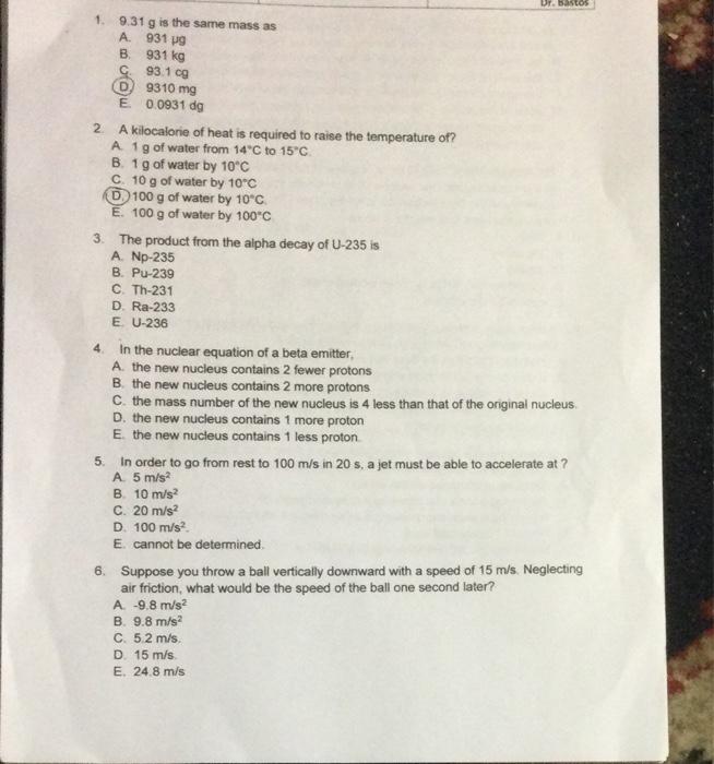 Solved Dr Bastos 4 1 9 31 G Is The Same Mass As A 931 Vg Chegg Com